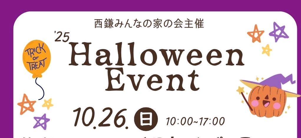 10月26日に西鎌みんなの家でやるハロウィンイベントのお手伝いを募集します。実働9:00〜15:00の範囲、途中数時間でも構いません。内容は、受付、ゲーム(釣りゲーム、ボウリング、あてっこゲーム、フェイスペイント)での対応です。シフトを決めるので「やってみる」から何時から何時に手伝いが可能か送ってください。もし希望が有れば受付かゲーム、どちらでも良ければ時間のみを送ってください。 当日、1時間当たり500クルッポお渡しします。